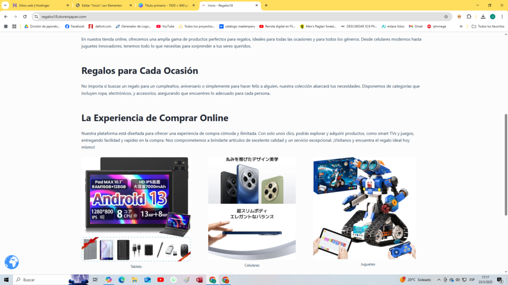 Con solo unos clics, podrás explorar una selección cuidadosamente organizada de ideas para regalos, adaptadas a diferentes gustos, ocasiones y presupuestos. Además, gracias a la comodidad del servicio de entrega a domicilio, puedes recibir tu compra directamente en la puerta de tu hogar, sin complicaciones.